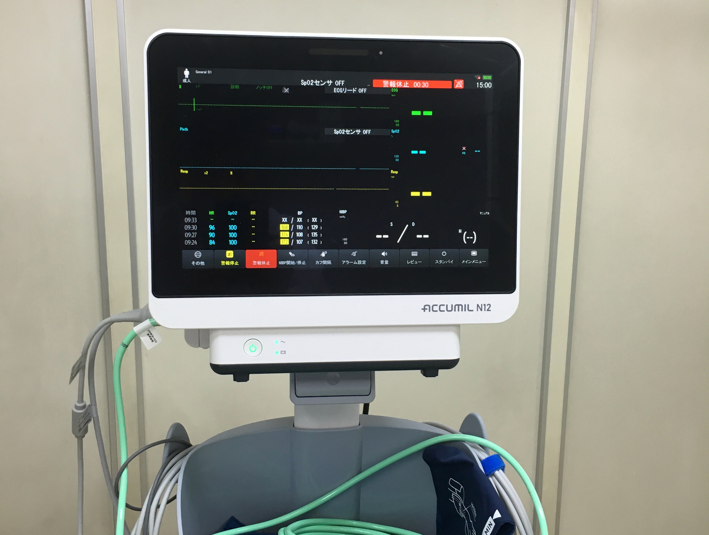 手術中や内視鏡検査中のバイタルサインモニターを行い、安全な手術や検査に努めています。